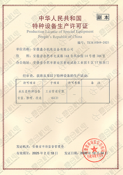 目前我公司具有建筑機電安裝工程專業(yè)承包一級資質、總承包二級、GC2壓力管道設計、施工資質?,F(xiàn)有高級工程師5名、高級技師55名、工程師22名、助工25名、技術員22名、各類專業(yè)技師50多名,強大的技術力量及精良的施工隊伍,為客戶提供全方位服務。 公司本著“一切為了用戶”的經(jīng)營理念,“以品質求生存、以誠信贏市場、以管理促發(fā)展”為要求,努力為廣大客戶提供專業(yè),優(yōu)質、高效的服務。